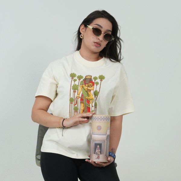 استحضر عظمة الإمبراطورية الآشورية مع تيشيرت “آشور بانيبال” المصنوع من القطن الطبيعي 100%، والذي يجسد قوة وحكمة الملك المحارب والمثقف. يأتي هذا التصميم الفريد والمناسب للجنسين في علبة فاخرة مع سوار آشوري أصيل، محتفياً بكنوز المعرفة والتراث الرافديني.
